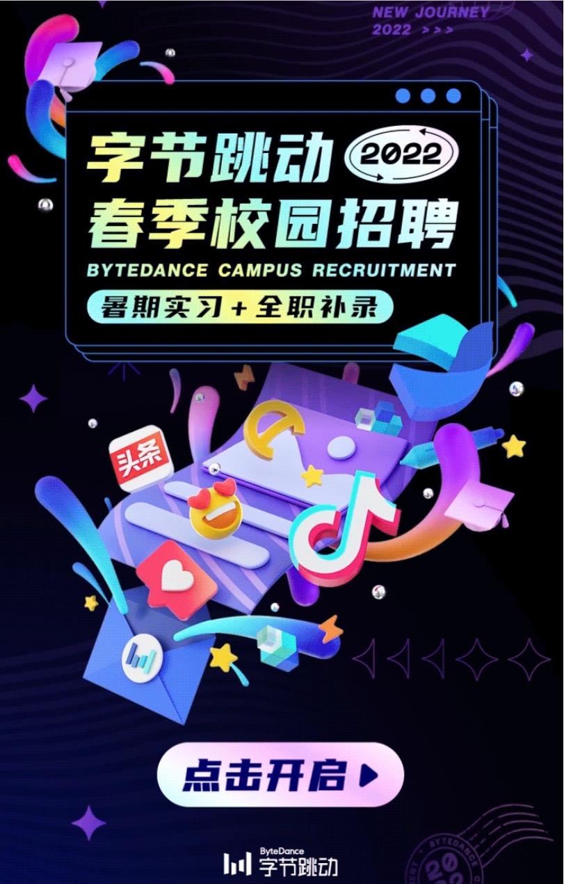 字节跳动 2022 春季校园招聘全面启动!