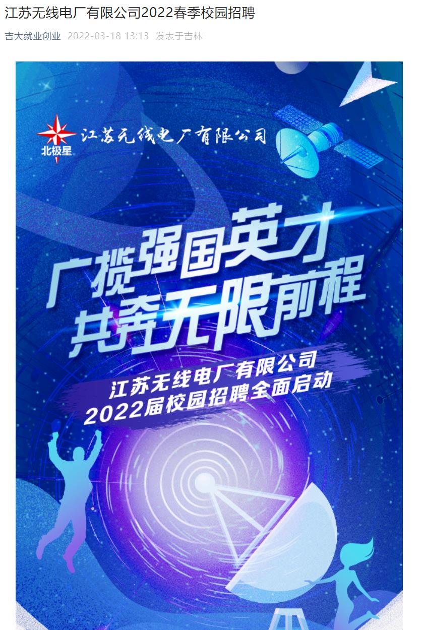 【2022招聘信息40】江苏无线电厂有限公司2022春季校园招聘