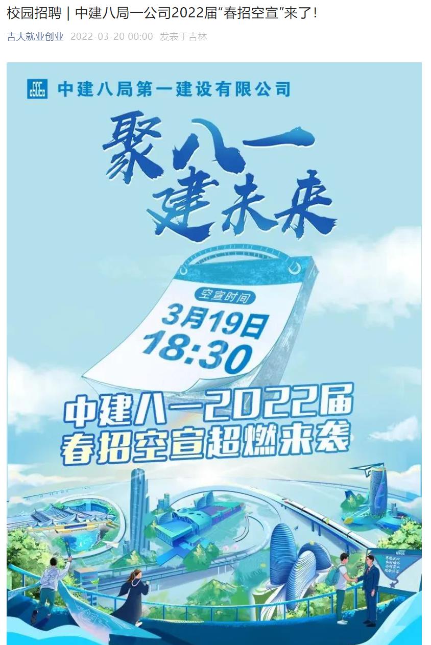 【2022招聘信息46】中建八局一公司2022届“春招空宣”