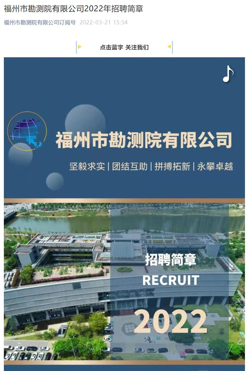【2022招聘信息48】福州市勘测院有限公司2022年招聘
