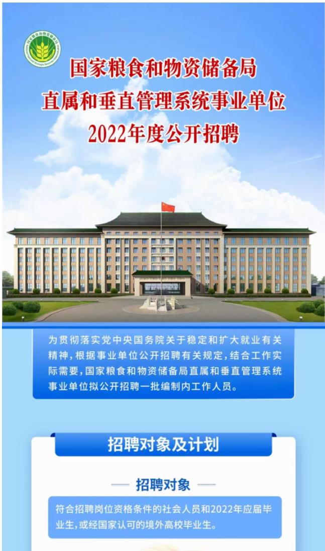 【2022招聘信息58】国家粮食和物资储备局直属和垂直管理系统事业单位