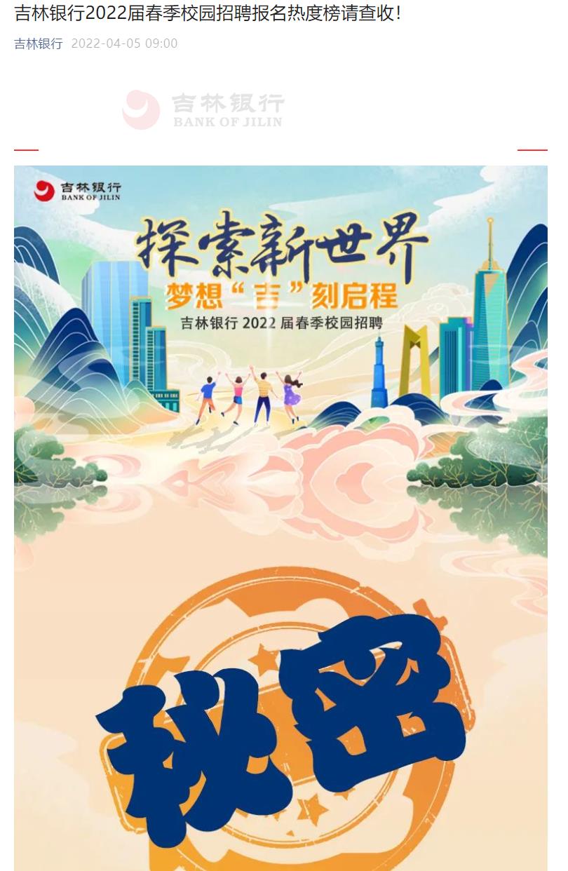 【2022招聘信息66】吉林银行2022届春季校园招聘