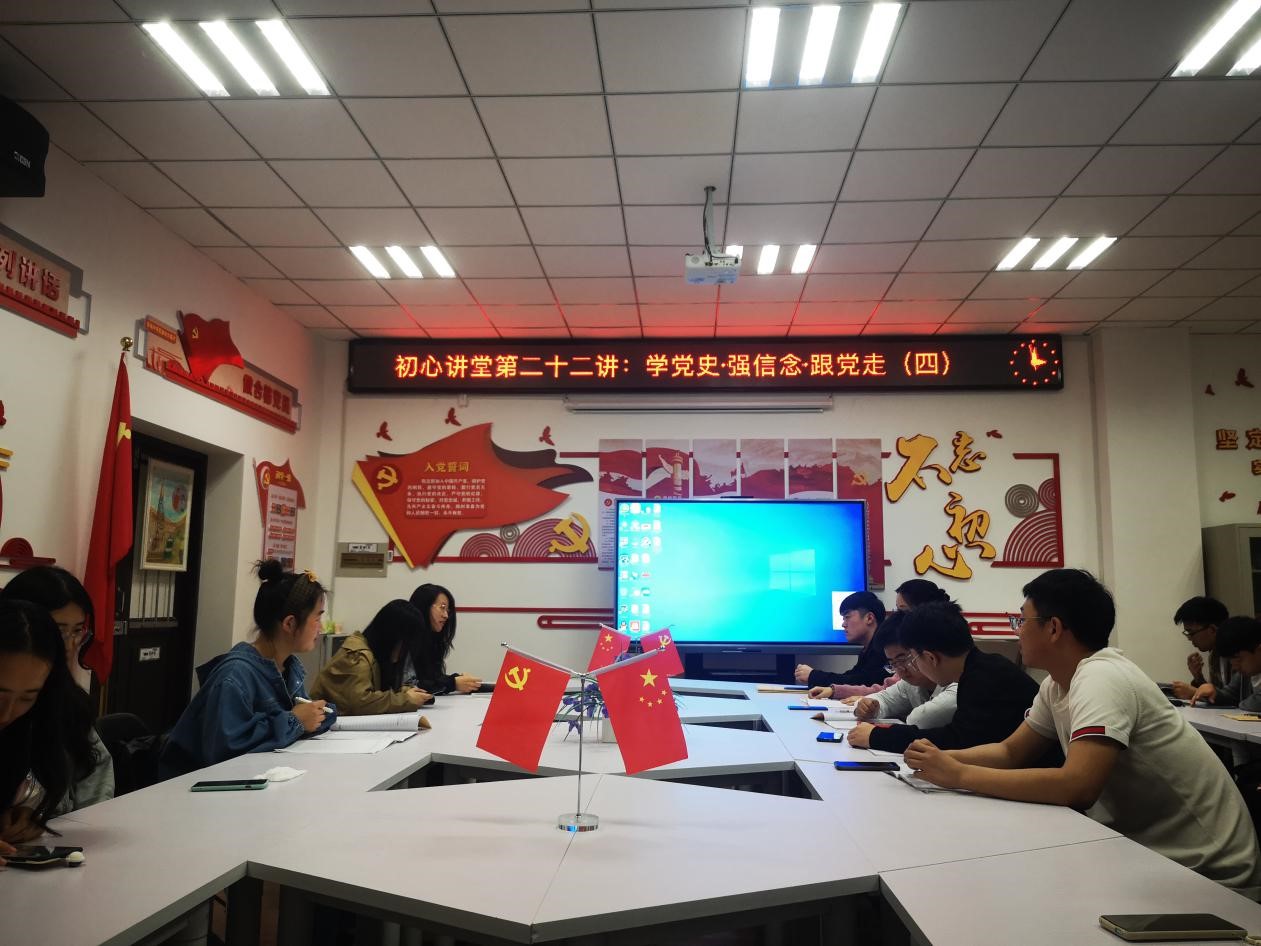 6月2日下午,永利yl23411本科生第一党支部在地质宫403室举办了初心讲堂第二十二讲:学党史·强信念·跟党走(四),活动由党支部副书记高若云同志主持,支部全体党员参加。