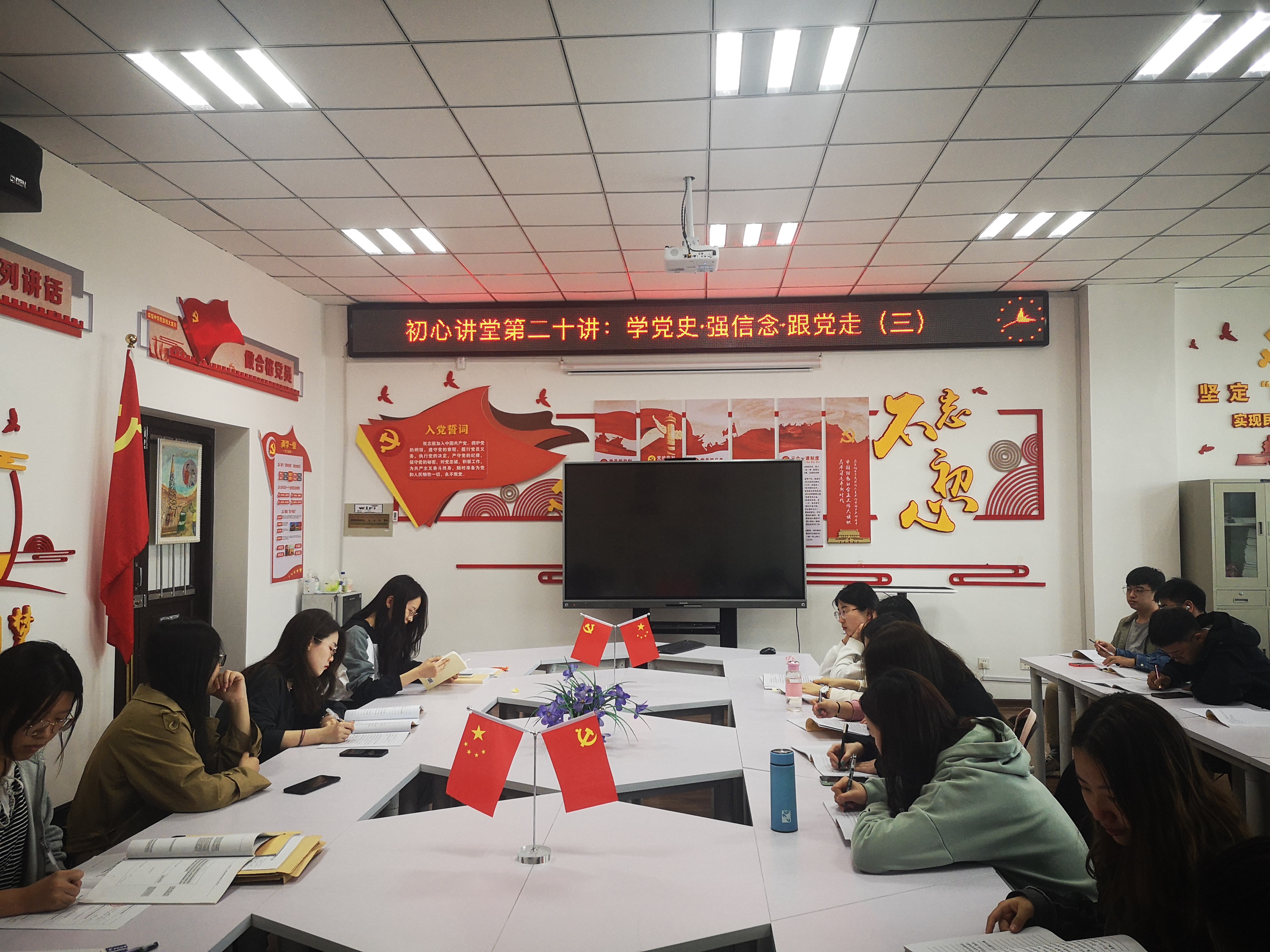 5月12日下午,永利yl23411本科生第一党支部在地质宫403室举办了初心讲堂第二十讲—学党史·强信念·跟党走(三),活动由党支部副书记高若云同志主持。