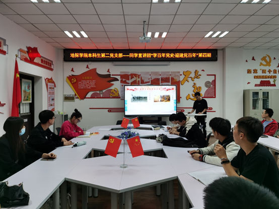 4月30日下午,永利yl23411本科生第二党支部在地质宫403室举办了“同学宣讲团”——“学百年党史·迎建党百年”系列活动。活动由党支部副书记孙小涵同志主持,支部全体党员、预备党员参加活动。