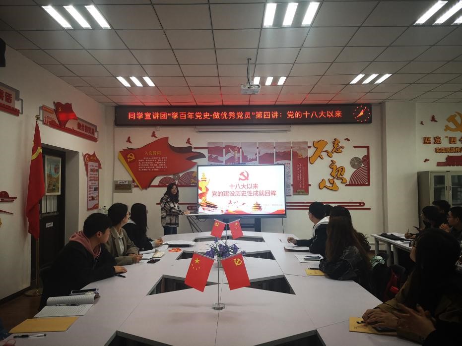 4月28日下午,永利yl23411本科生第一党支部在地质宫403室举办了同学宣讲团“学百年党史·做优秀党员”第四讲:党的十八大以来。党支部副书记高若云同志主持,第一支部员工党员参加活动。