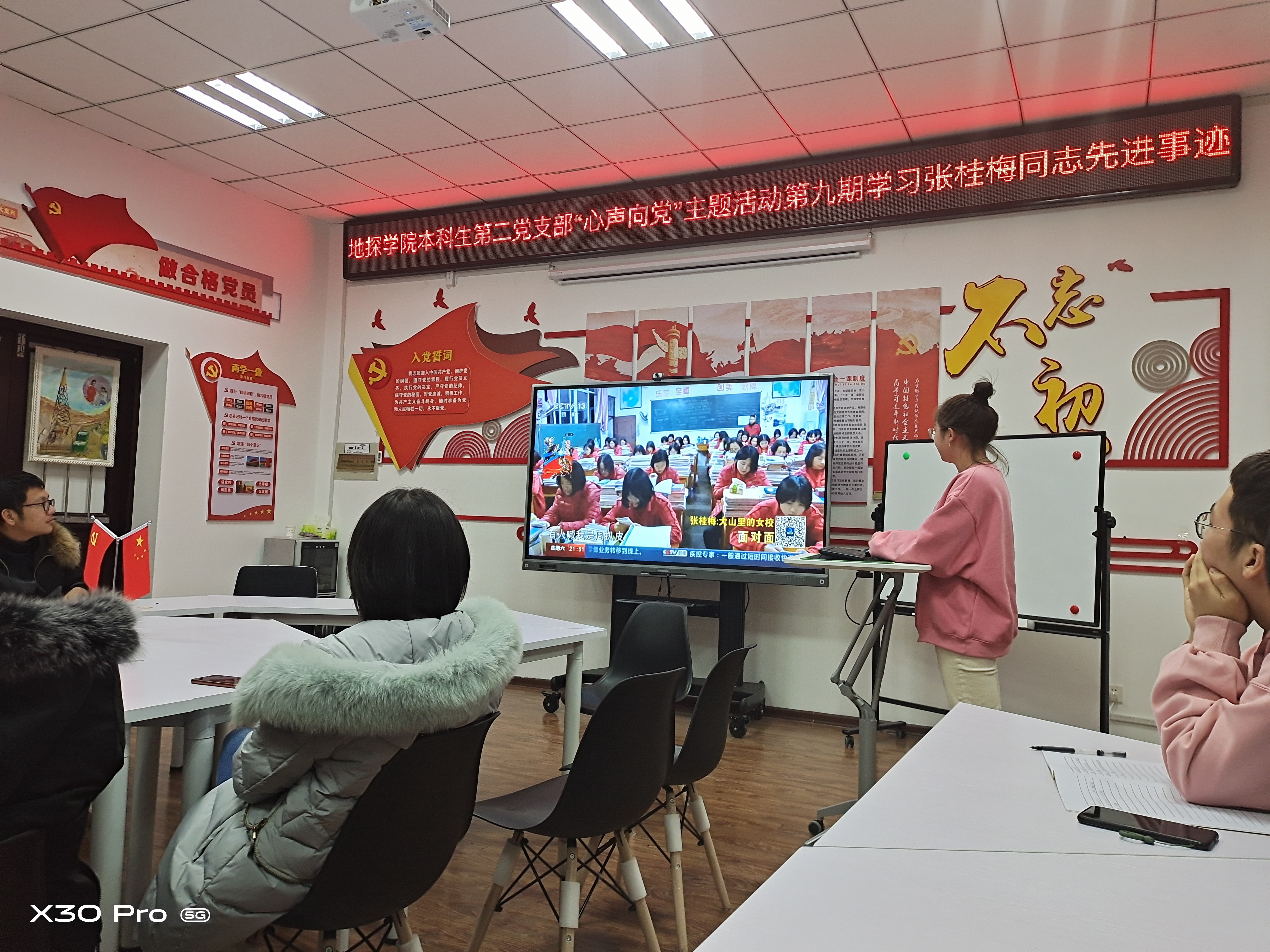 2020年11月27日,永利yl23411本科生第二党支部在地质宫403开展“心声向党”系列主题党日活动第九期—学习张桂梅同志先进事迹。本次活动由本科生第二党支部司镇通老师主持。
