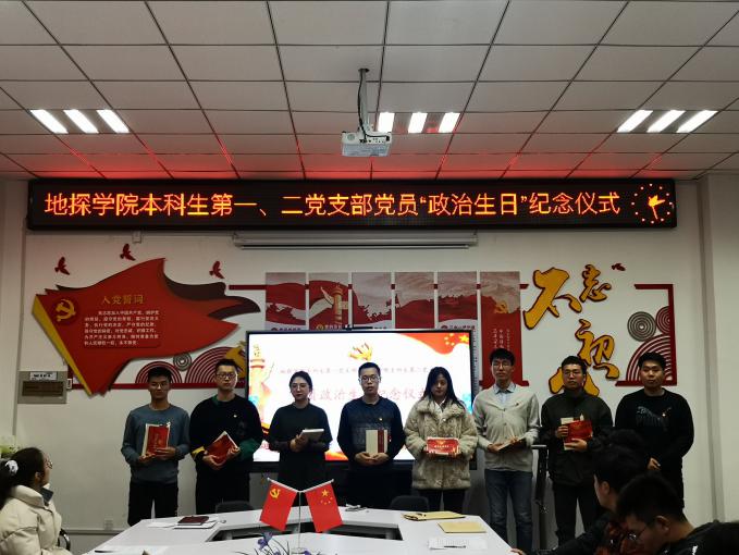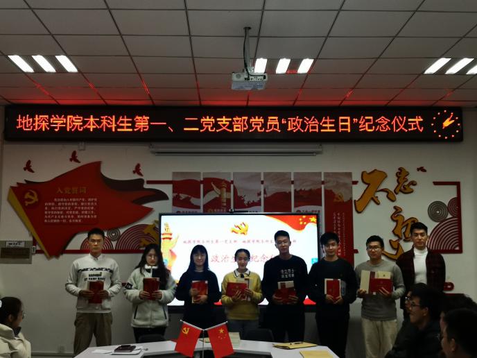 11月25日,永利yl23411本科生第一、二党支部在地质宫403室举办了党员“政治生日”纪念仪式,由党支部书记樊轩铄同志主持,支部全体党员参会。