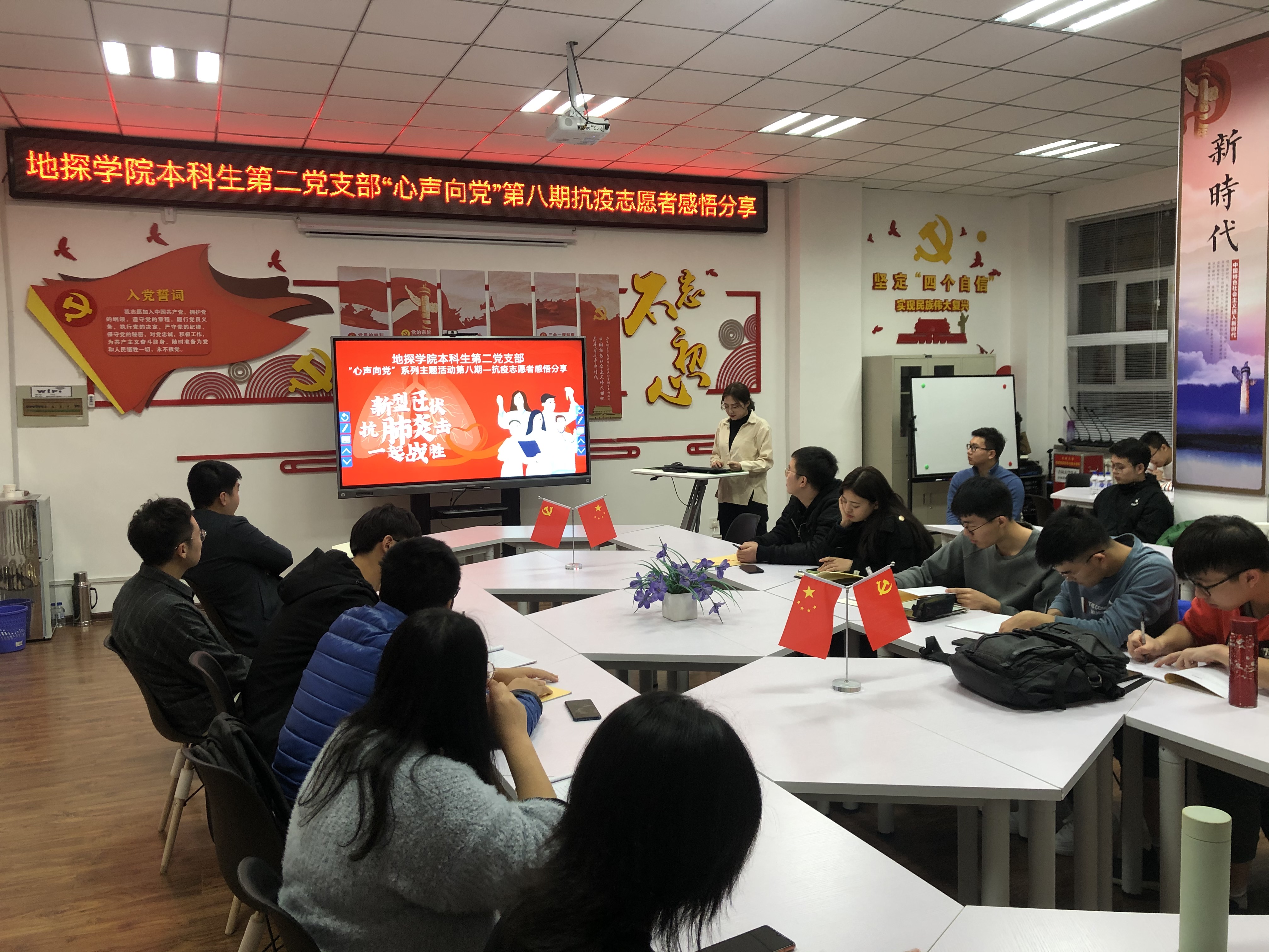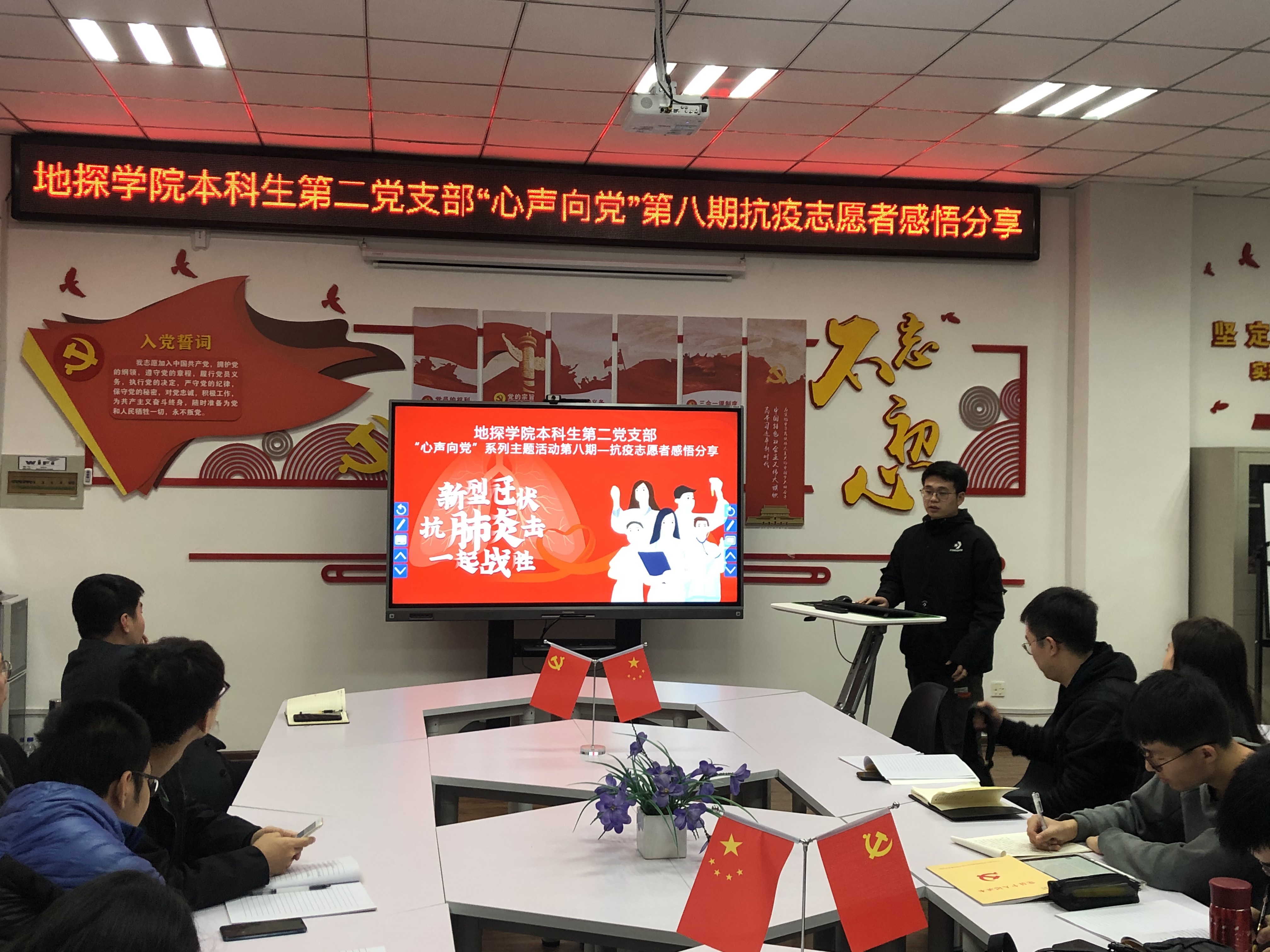 2020年11月16日,永利yl23411本科生第二党支部在地质宫403党员活动室展开了“心声向党”系列主题活动第八期—“以青春之小我,凝抗疫之大爱”抗疫志愿者交流分享会。活动邀请了四位抗疫志愿者进行他们的经历分享,大家收获良多。