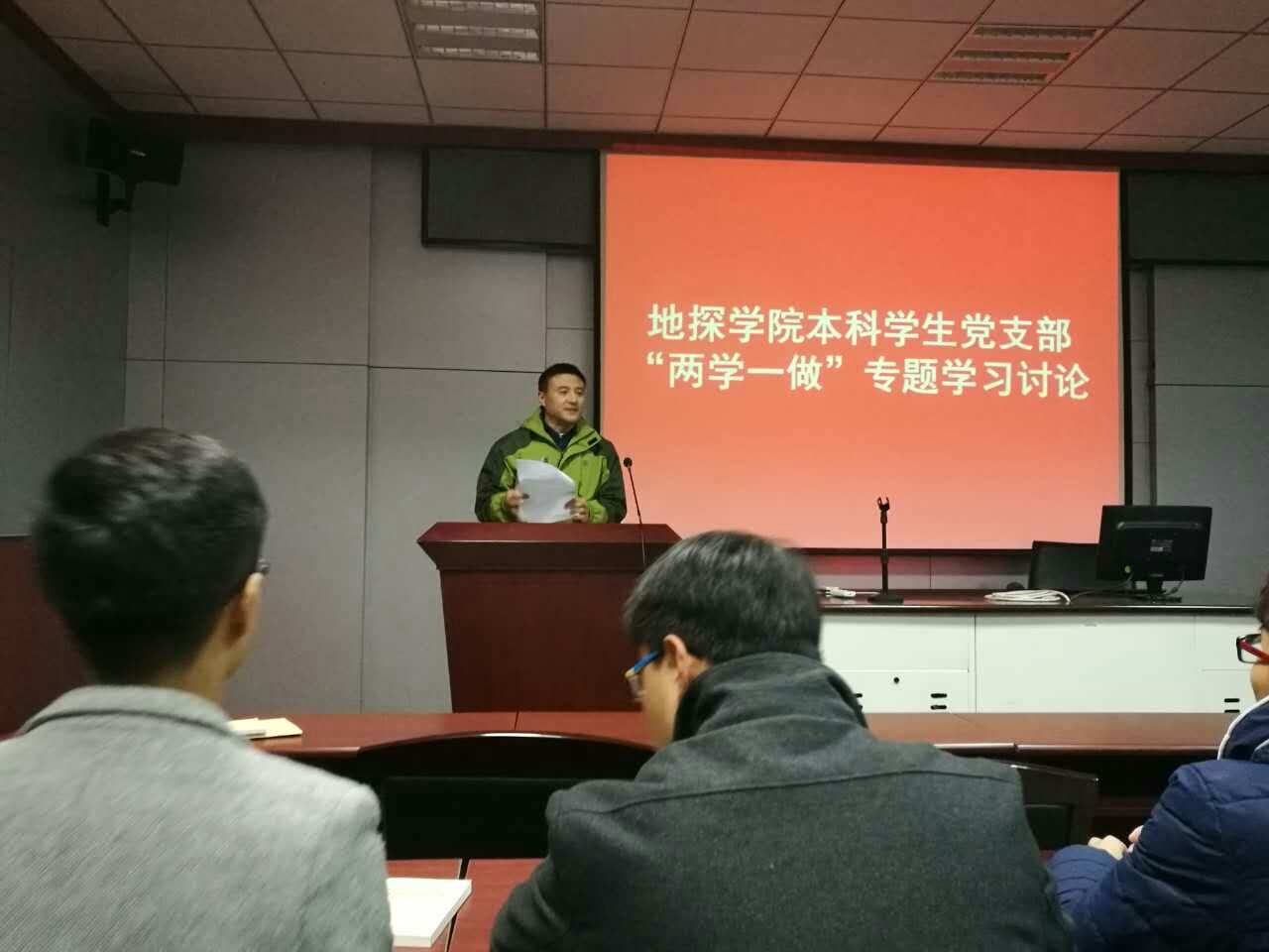 2016年11月9日下午,永利yl23411本科生党支部在地质宫449举行了“两学一做”第四次专题——“讲奉献、有作为”专题学习讨论会,本次讨论会由于学武老师主持,本科生党支部全体党员参加了专题学习和讨论。