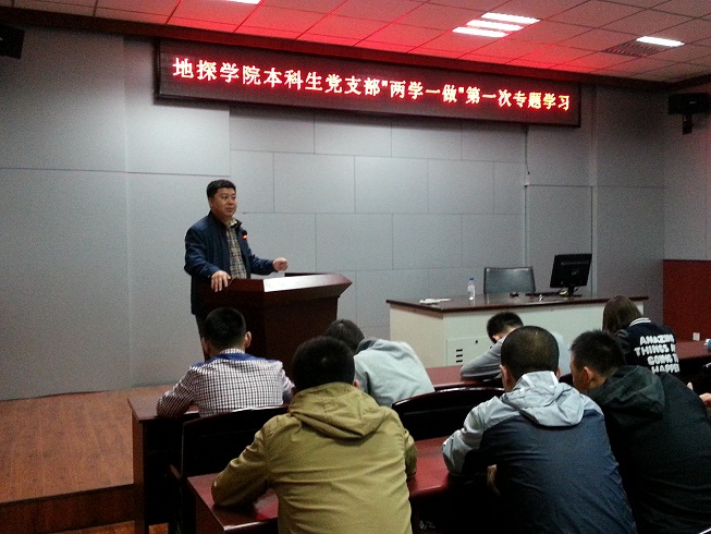 2016年5月26日下午,在地质宫449永利yl23411本科生党支部举行了“两学一做”第一次专题学习。公司党委副书记宋宏宇老师及本科生党支部全体党员参加了此次学习活动。