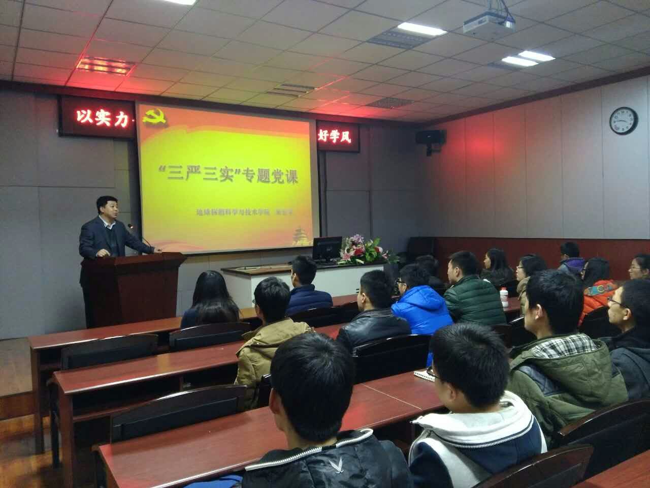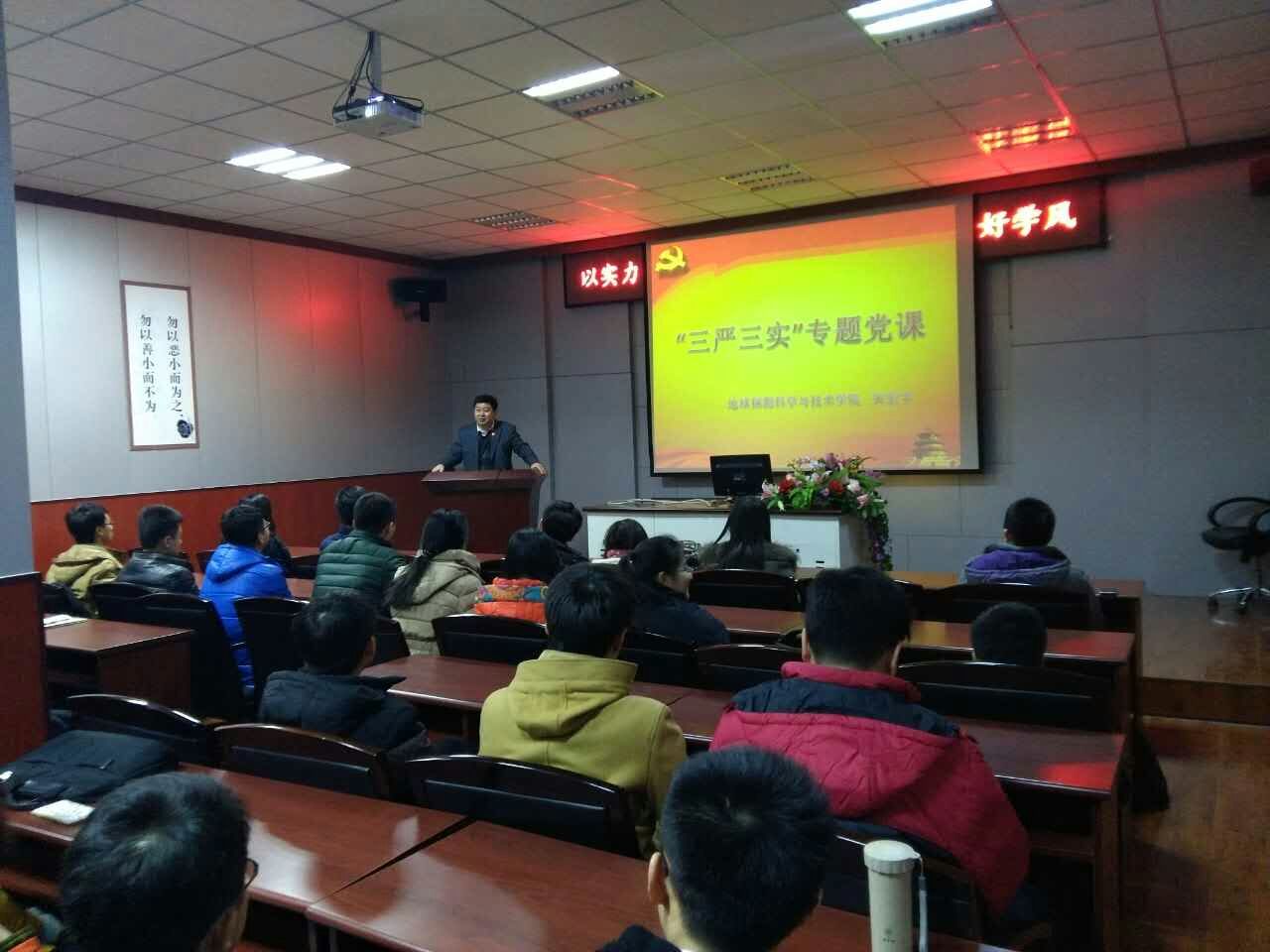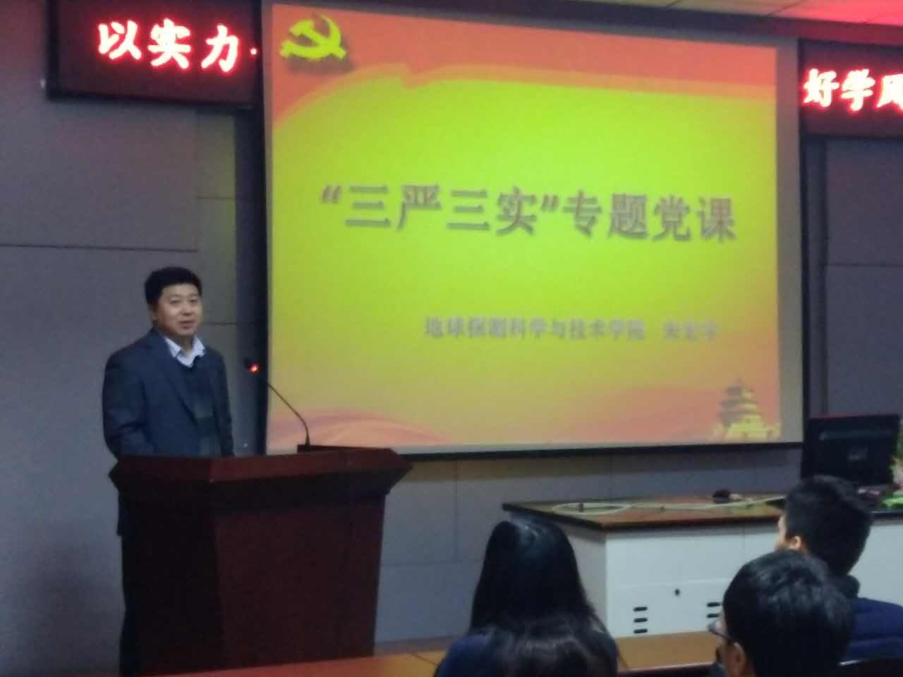 12月28日下午四时,永利yl23411在地质宫449报告厅召开了“三严三实”专题教育党课,由公司党委副书记宋宏宇同志为本科生党员讲授党课。