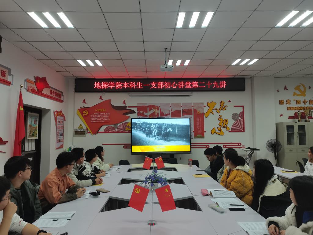 2021年12月9日,永利yl23411本科生第一党支部于地质宫403室举办了初心讲堂第二十九讲——观看并学习《党史故事100讲》之“雄关漫道 三军会师”。本次活动由本科生第一党支部孙宜芳同志主持,本科生第一党支部全体员工党员参加。