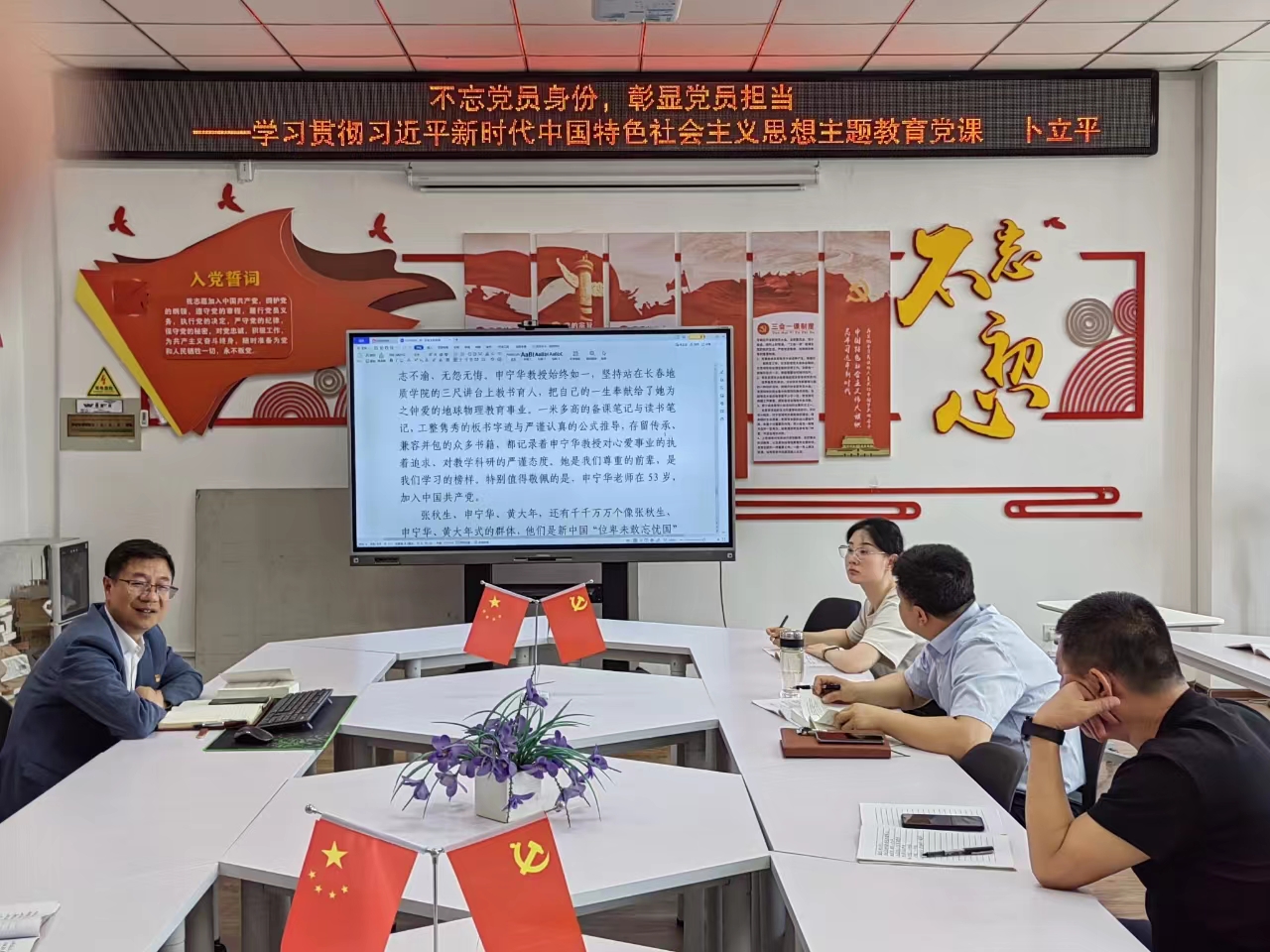 卜立平同志围绕深刻认识开展主题教育的重大意义,积极融入主题教育工作;深刻把握主题教育的要求和任务,学思用贯通,知信行统一;牢记党员身份,彰显党员担当,争做新时代“四有”党员表率;深刻了解院史,学习身边的榜样,在新时代建功立业等四个方面做了讲授。他指出党员干部特别是班子成员要在主题教育中发挥好示范作用,牢记入党誓词,听党话、跟党走,为党的事业奋斗终生。要率先争做新时代“四有”党员,心中有党、心中有民、心中有责、心中有戒,立德树人,无愧于党和人民的重托。激励师生以黄大年同志为榜样,学习他心有大我、至诚报国的爱国情怀,学习他教书育人、敢为人先的敬业精神,学习他淡泊名利、甘于奉献的高尚情操。
