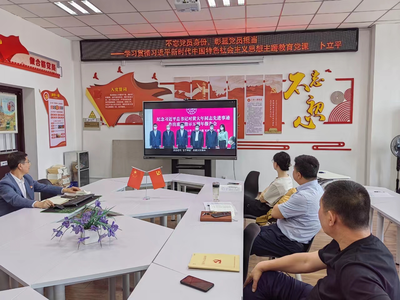 党课结束后,大家一起观看了《立德树人 培根铸魂 大力传承黄大年精神》视频专题片。