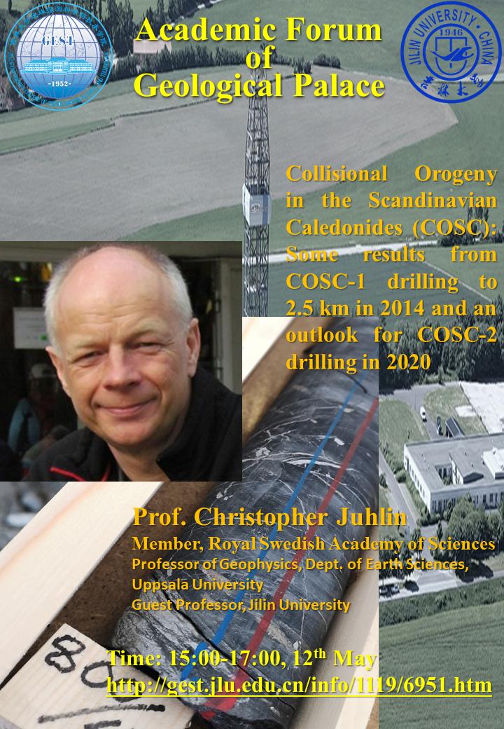 报告题目:Collisional Orogeny in the Scandinavian Caledonides (COSC): Some results from COSC-1 drilling to 2.5 km in 2014 and an outlook for COSC-2 drilling in 2020