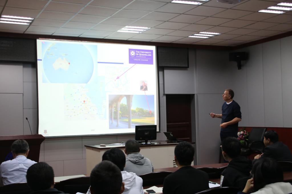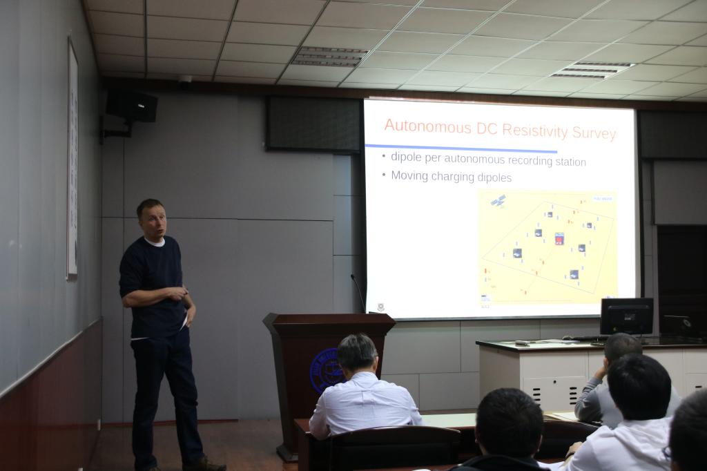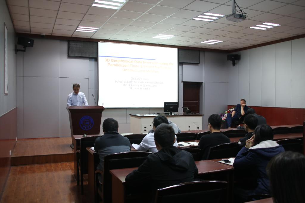 此次,公司邀请到了澳大利亚昆士兰大学的Lutz Gross博士承担讲授任务。在此期间, Lutz Gross 博士于11月1日做了题为“3D Geophysical Data Inversion using the Parallelized Finite Element Method on Unstructured Meshes”的学术报告。永利yl23411副经理冯晅教授主持了会议。公司师生积极提问,Lutz博士对教师以及员工提出的问题一一进行了解答。