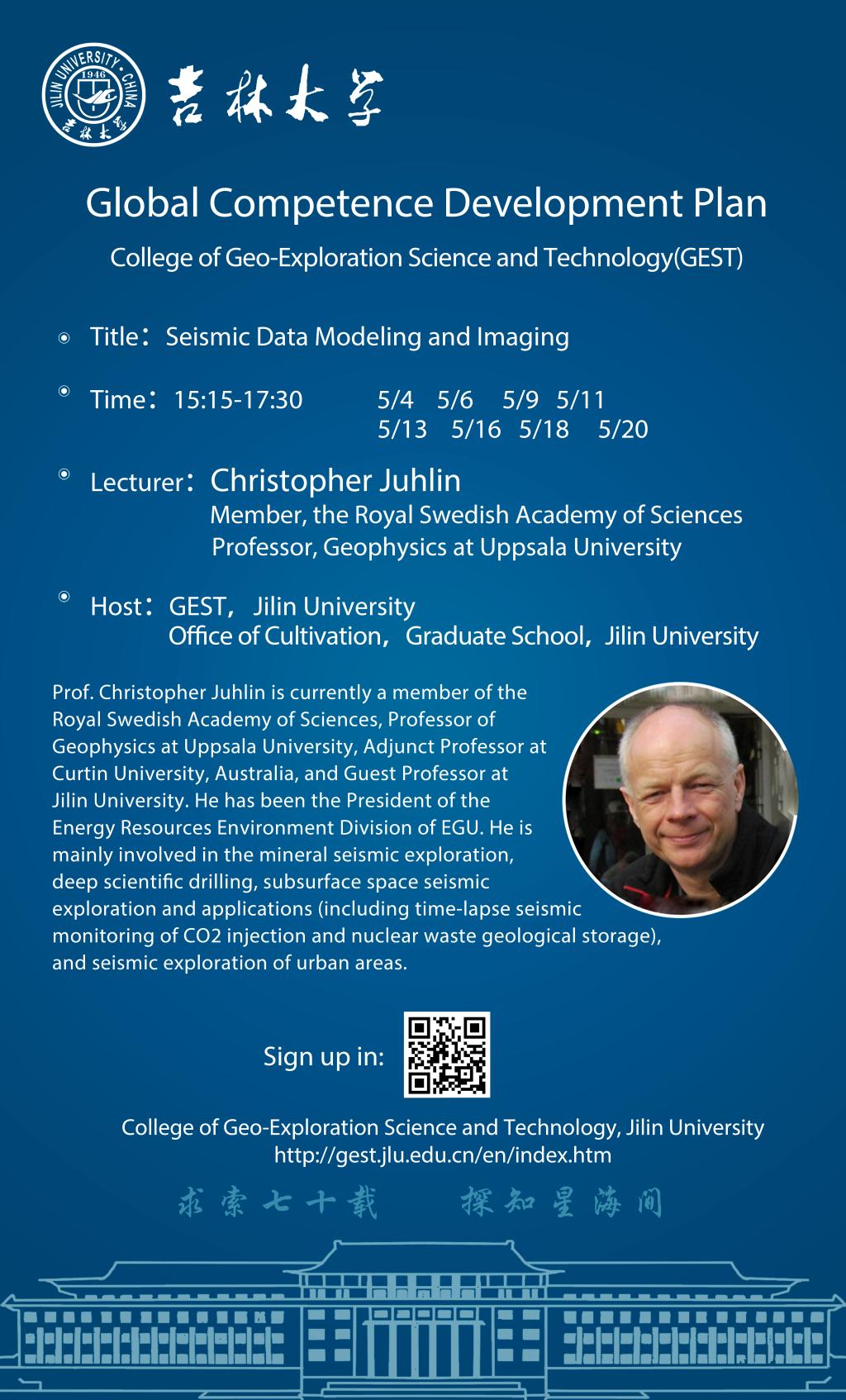 瑞典皇家科公司Christopher Juhlin院士系列讲座——地探学子全球胜任力提升计划(2022春季学期)