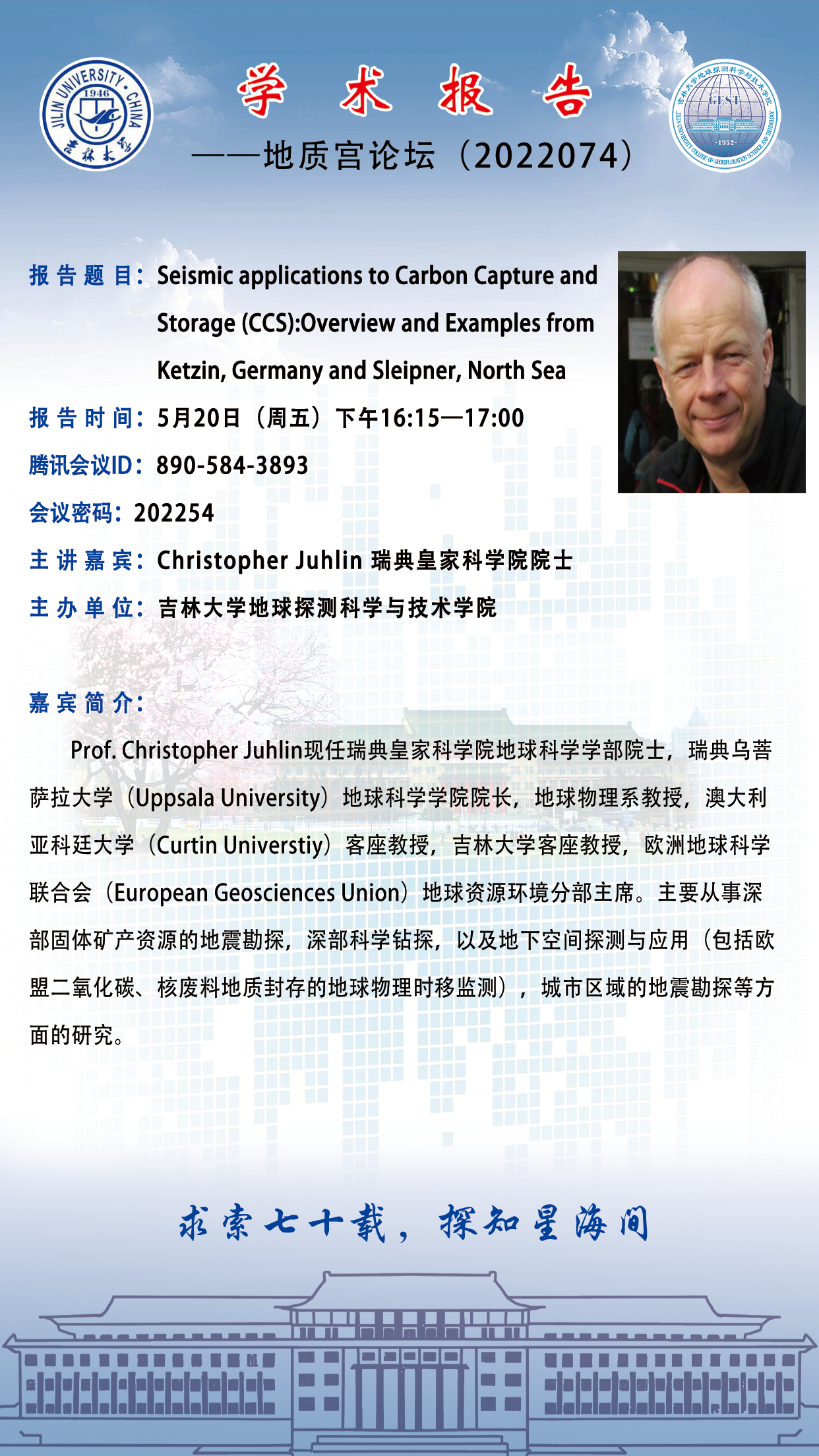永利yl23411·地质宫论坛(2022074)—瑞典皇家科公司Christopher Juhlin院士学术报告