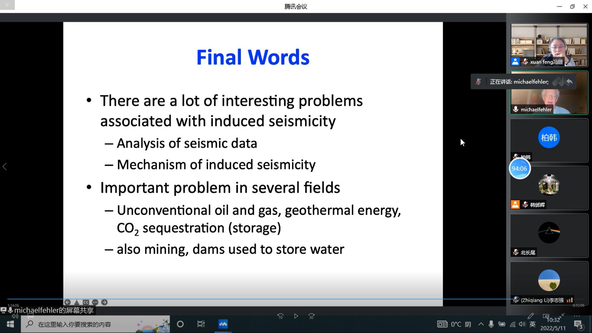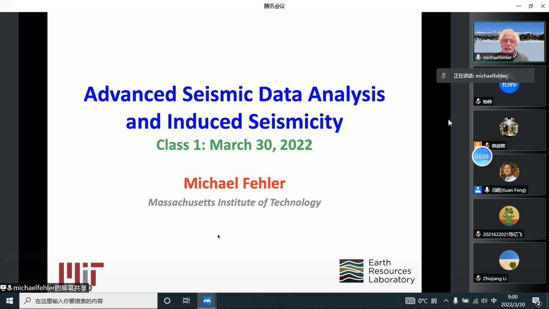 为推动员工培养国际化,提升学科国际竞争力和声誉,吉大地探学子全球胜任力提升计划春季学期(线上项目)——美国麻省理工公司Michael Fehler博士全英文授课项目成功举办。2022年3月30日至5月11日,公司邀请美国麻省理工公司Michael Fehler博士讲授“高级地震资料分析与诱发地震活动”全英文课程。作为授课团队成员,永利yl23411冯晅教授全程协助项目实施。