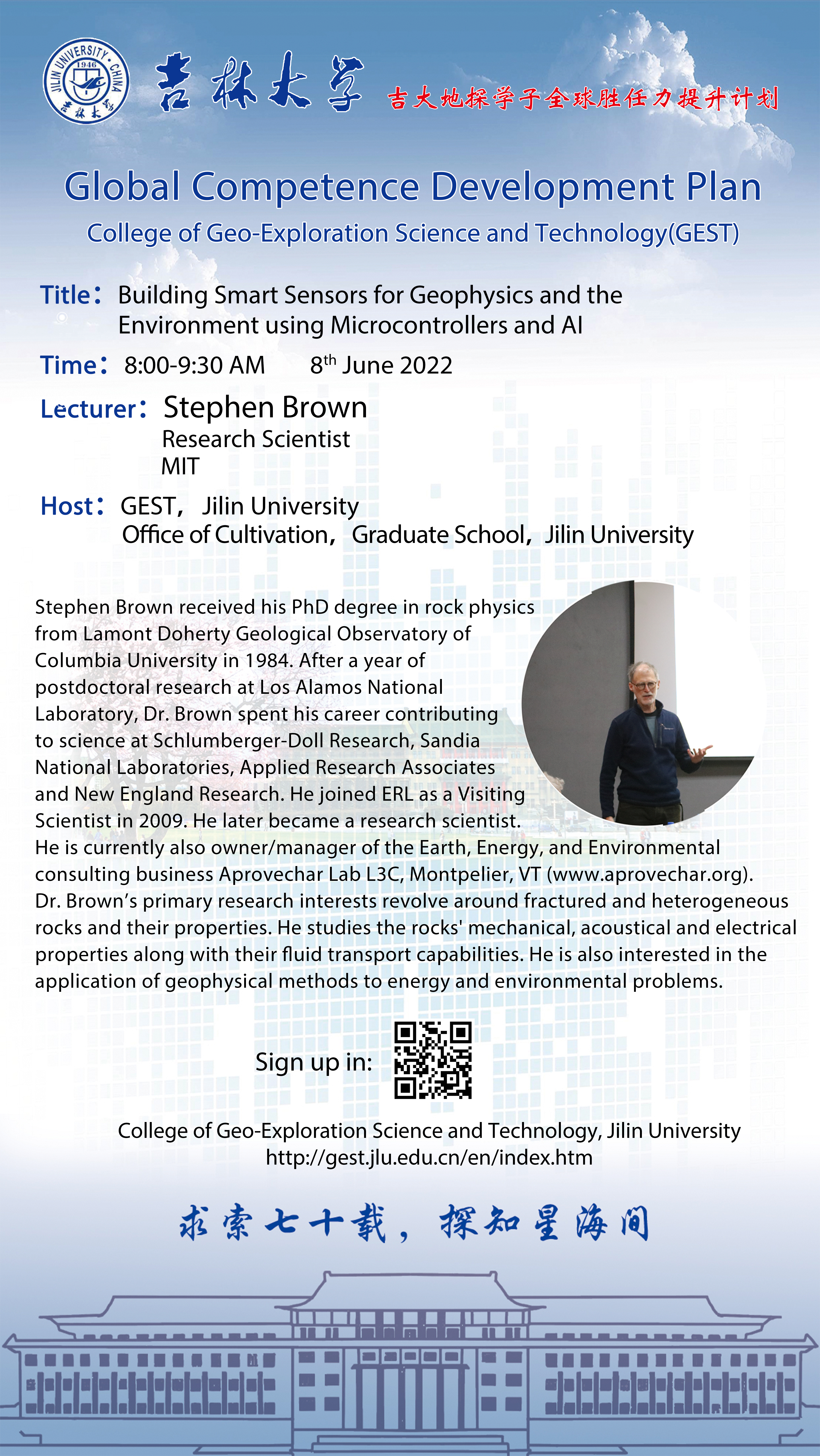 吉大地探学子全球胜任力提升计划(2022春季学期)——麻省理工公司Stephen Brown博士学术讲座