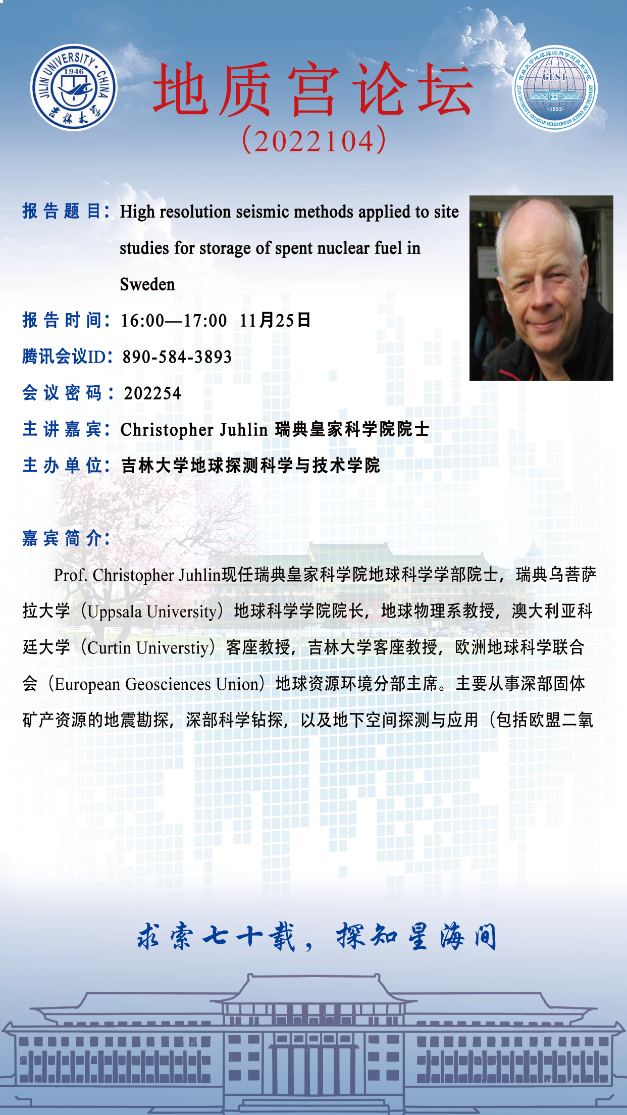 永利yl23411·地质宫论坛(2022104)—瑞典皇家科公司Christopher Juhlin院士学术报告