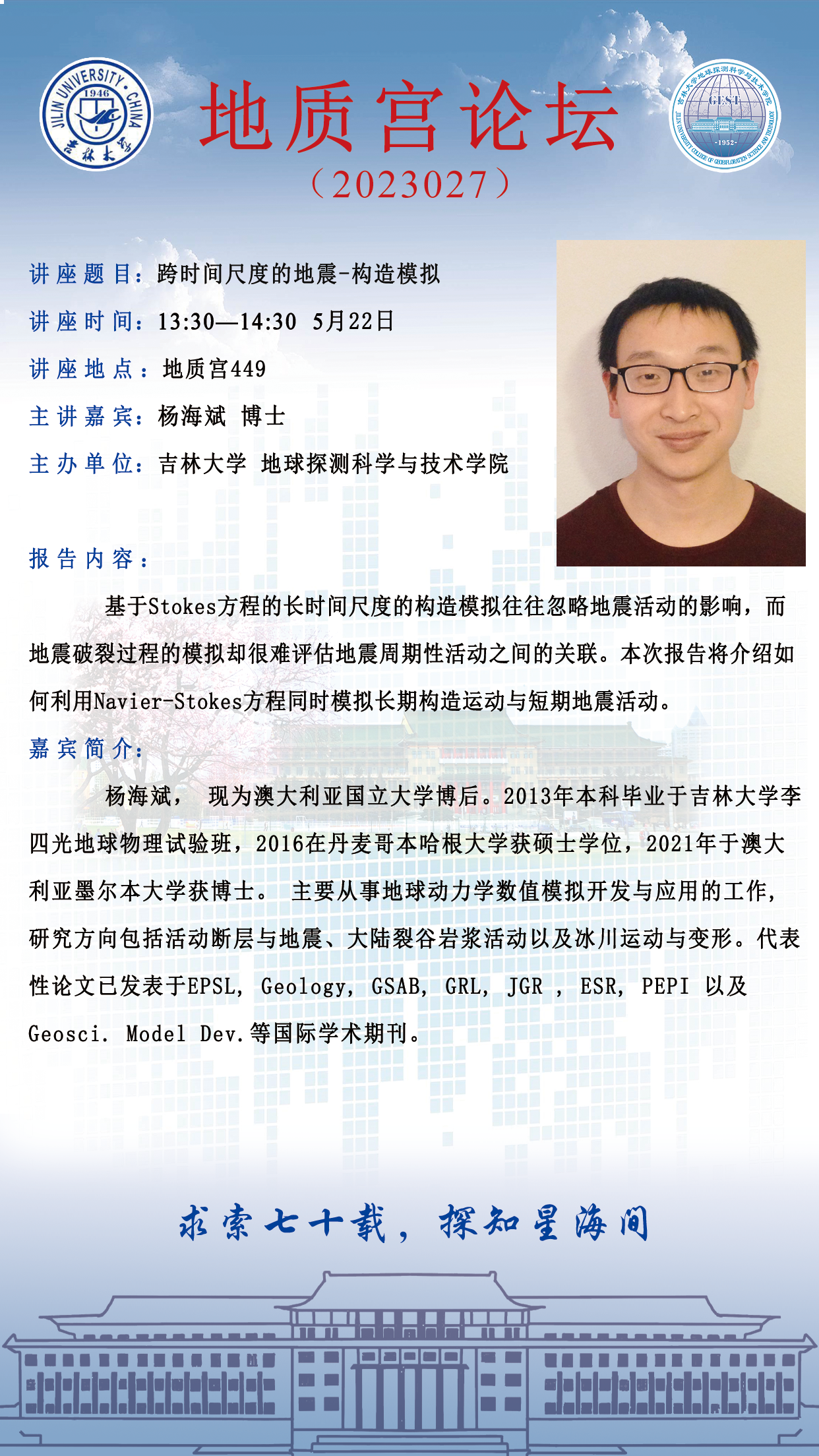 地学70周年·永利yl23411·地质宫论坛(2023027)—澳大利亚国立大学杨海斌博士学术报告