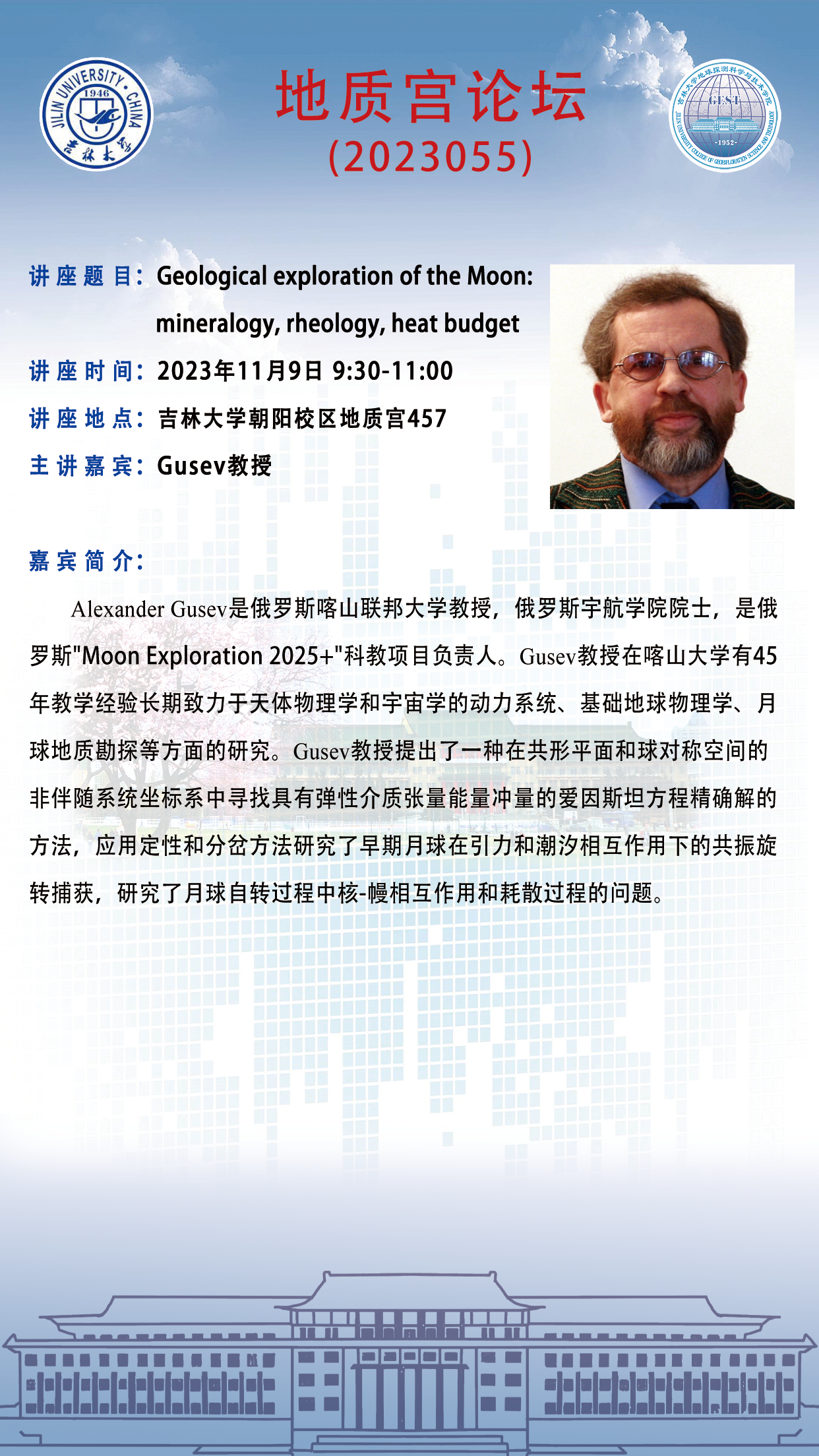 永利yl23411·地质宫论坛(2023055)—俄罗斯宇航公司Gusev院士学术报告