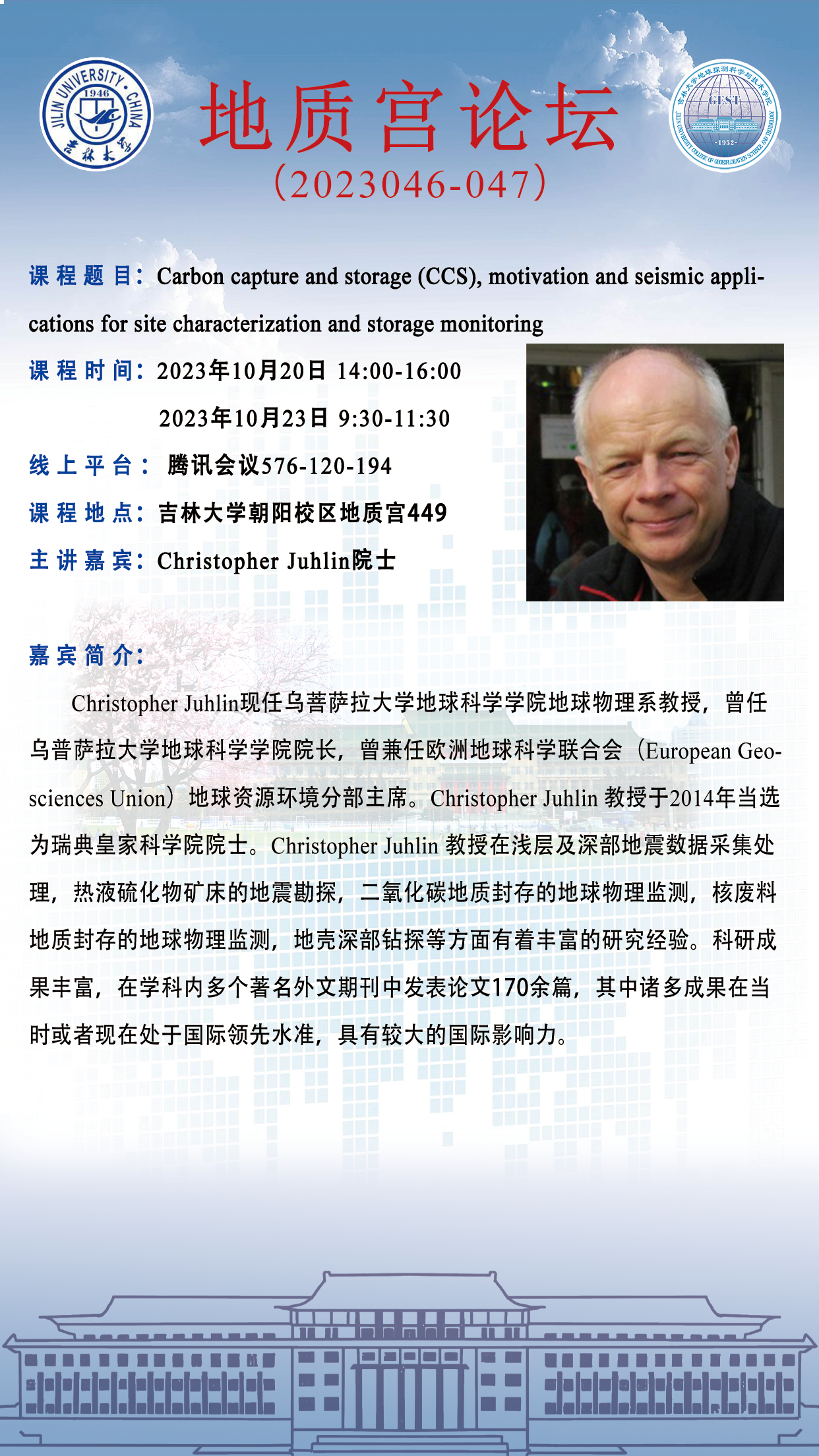 永利yl23411·地质宫论坛(2023046-47)—瑞典皇家科公司Christopher Juhlin院士系列课程