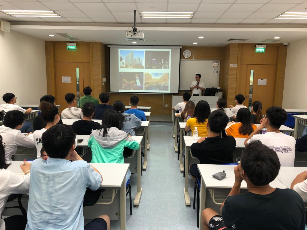 10月14日上午,在孟治国教授和樊轩铄老师的组织带领下,访学团队步行至澳门科技大学,参观了澳门科技大学的美丽校园。随后,澳门科技大学资讯科技公司助理经理蔡占川教授与公司访学团队举行了座谈会。会上,蔡占川教授为访学团队详细介绍了资讯科技公司的优秀学术研究成果、研究生课程的开设情况以及公司的主要研究领域和实验室情况。在交流环节,蔡占川教授回答了关于遥感图像拼接及修复的研究进展等学术问题,并就同学们关心的学业奖助学金等信息进行了解答。