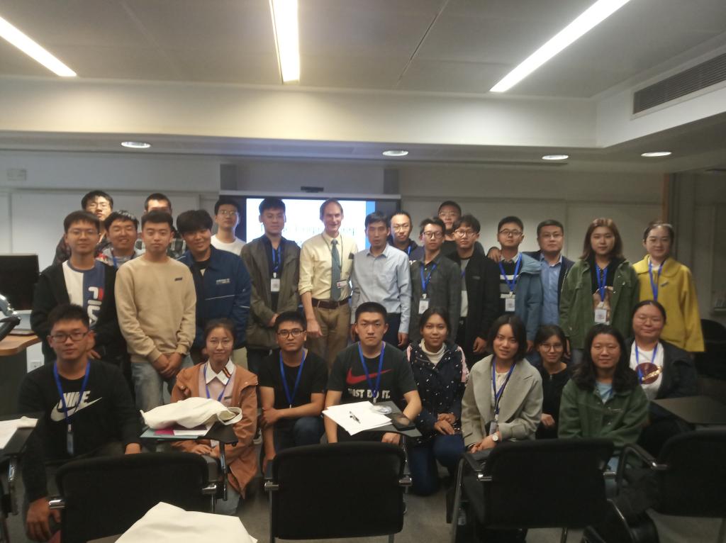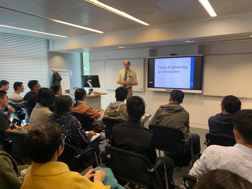 在牛津大学the Department of Engineering Science,访学团走进课堂,体验名校教学。牛津大学的DrJulianFDye利用一堂课的时间从Introduction to Tissue Engineering,Why tissue-engineer,Bioreactors,Biomaterials,Skin reconstruction,Tissue Engineering and the Nervous System等6个方面为同学们生动地讲授了TissueEngineering课程的第一讲内容。讲授过程中DrJulian举止动作风趣,语言通俗易懂。课后,与访学团同学们进行了长时间的互动,回答了同学们各种各样的问题并合影留念。
