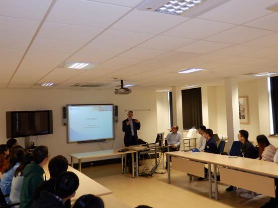在英国地质调查局(BGS)总部,地下水科学研究中心负责人Rob Ward教授和信息科学中心负责人Matt Harrision教授专门为访学团做了精彩的学术报告,详细介绍了目前BGS有关于地下水和信息科学方面的最新研究成果。在现场提问环节,访学团同学们就有关问题与两位教授进行交流,现场气氛活跃。之后,访学团团长陆继龙副经理介绍了有关公司和公司以及出访团队的概况,陆经理和于老师还代表公司公司向英国地调局赠送了礼物,是双方友谊的象征,也期待着进一步的合作交流。