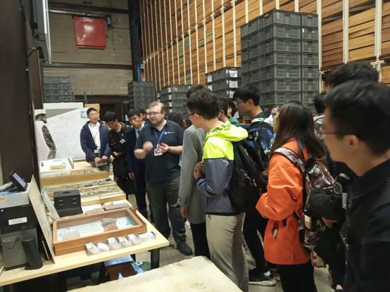 最后,访学团参观了令人惊叹的BGS岩石标本库,该标本库储存着英国陆地和近海多年来采集的15724盘、396895箱地质岩心样品,涉及13901个钻孔,共计490770米长。同时,BGS岩石标本库负责专家还向同学们讲解了岩石标本采集、运输、制作、储藏的详细过程,并在制作工作间演示了标本的制作流程。